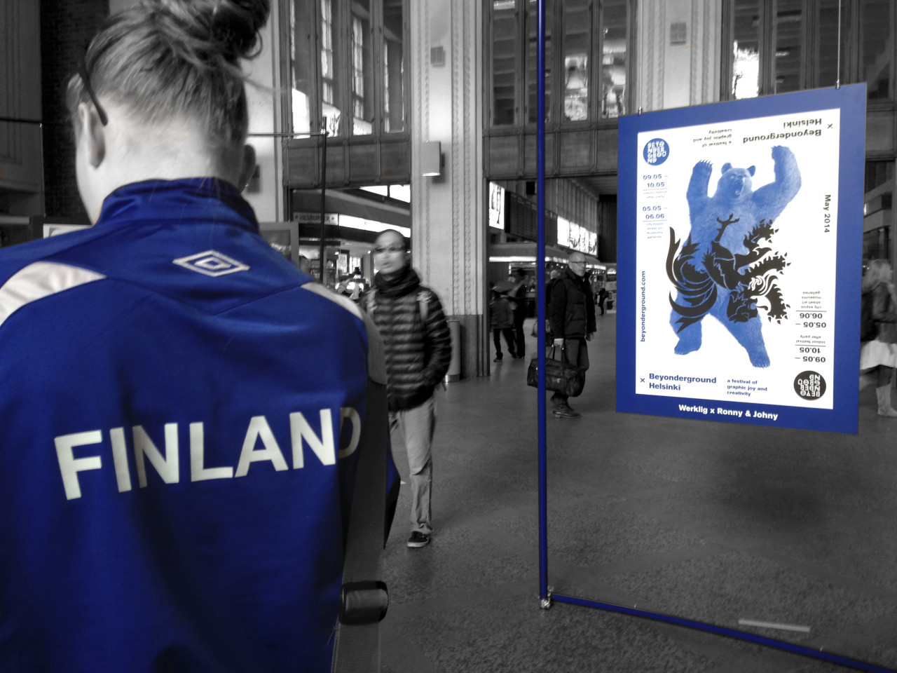 Identity design for Helsinki’s Beyonderground festival; a festival of graphic joy and creativity with lectures by Belgian and Finnish designers. We curated a collection of Belgian and Finnish clichés which could be combined in several provocative, fertile or challenging ways.
